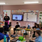 On Wednesday 29th November we had a special visitor to the school. Bishop Cullinan took time out of his busy schedule to visit every class in the school. Bishop Cullinan spoke to the children about advent, answered some very interesting questions and told a couple of jokes as well as listening to a few others.
